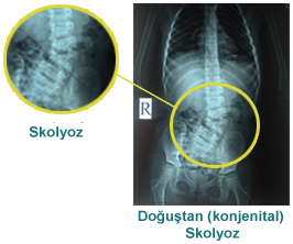 Doğuştan skolyoz hastalığı (konjenital), tıpkı çocuk felci veya beyin felci durumları sonucunda oluşan skolyoz