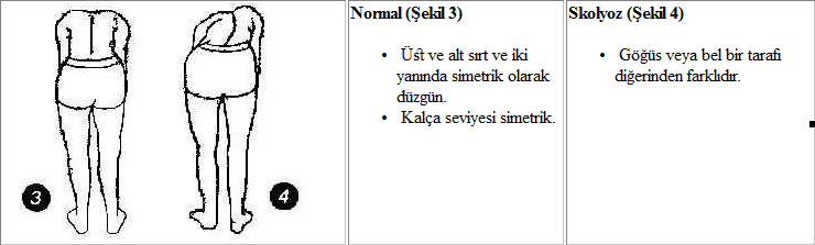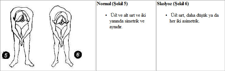 Omurgaya arkadan bakıldığında eğrilik düz durulduğunda bile fark edilebildiği gibi bazen bu denli net değildir ve ancak öne eğilme durumunda, kontroller ve röntgen filmlerinde anlaşılabilir.